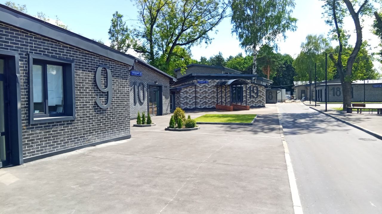 Территория БЦ занимает 2,24 Га. На ней расположены 19 строений общей площадью 7 105 кв.м. Архитектурный ансамбль в скандинавском стиле украшают современные декоративные приемы: отделка фактурными материалами, мощение брусчаткой. Собственный вход в здание, мокрая точка, электричество, охрана. Развитая инфраструктура.